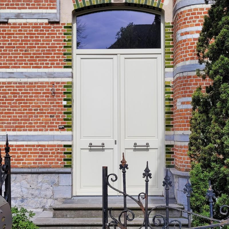 Wil je het originele uitzicht bewaren van de statige inkomdeur en dat mooie sierrooster recupereren? Dat kan. We hertekenen de deur volgens de hedendaagse normen en bouwen het sierrooster over op de nieuwe deur.